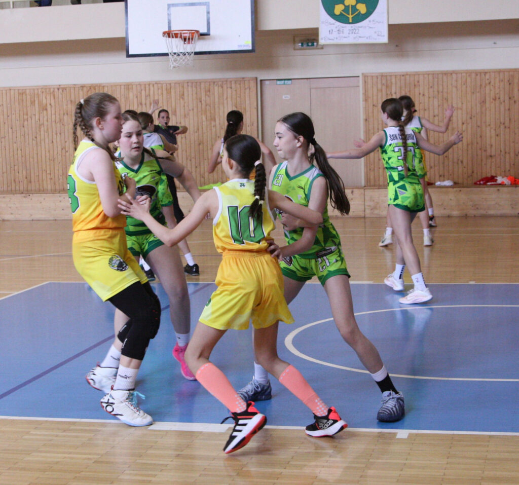 V sobotu odohrali prvé dva zápasy play off vo finále súťaže aj dievčatá z tímu U13 pod vedením trénerok T. Ribakovs a D. Oslejovej na domácej pôde proti Šamorínu. Vstup do prvého zápasu mali naše dievčatá impozantný. Po pár minútach vyhrávali 8 : 0. Boli sme aktívni v obrane a súperovi nevychádzali rýchle protiútoky. V polovici druhej štvrtiny sme po koši E. Šimurdovej viedli dvojciferne 19 : 8. Šamorín je však kvalitný tím a bojoval úporne. Do polčasu dokázal znížiť na 20 : 16. Aj do druhého polčasu sme vstúpili výborne a dokázali sme si vytvoriť opäť dvojciferný náskok za stavu 31 : 20. Ten súper do konca štvrtiny dokázal znížiť na 5 bodov a začala sa črtať dráme. Vo 4. štvrtine nám Šamorín predviedol niekoľko úspešných protiútokov, naše dievčatá sa s ubúdajúcimi silami nedokázali dostatočne rýchlo vracať do obrany a výsledkom bolo vedenie súpera 35 : 36 v polovici štvrtiny. Minútu pred koncom nás dostala do vedenia 40 : 38 úspešnou strelou A. Kuchareková ale súper tesne pred koncom vyrovnal na 40 : 40 a išlo sa do predĺženia. V ňom už mal jednoznačne viac síl Šamorín a po dramatickom závere vyhral 44 : 48. Dievčatám však patrí veľká pochvala za nasadenie a bojovnosť, s ktorou sa o víťazstvo bili až do konca predĺženia. Fotogaléria zo zápasu tu.